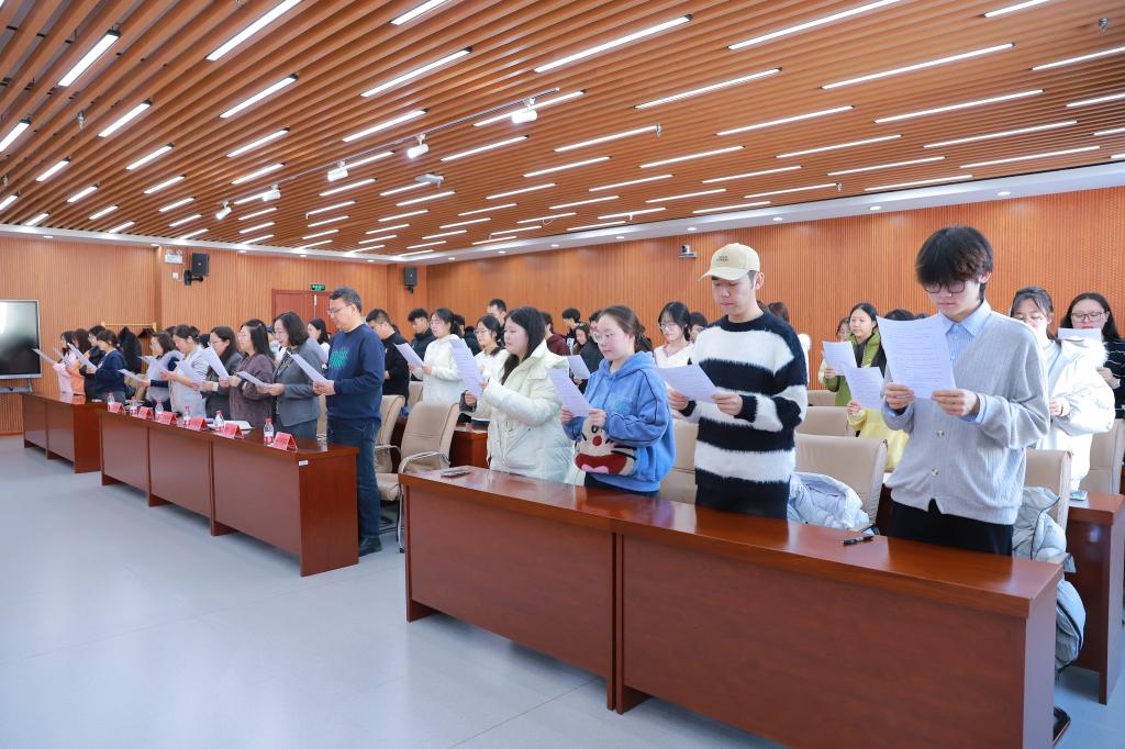 12月4日上午,教育部举行2025年国家宪法日教育系统“宪法晨读”活动。我校在崇文楼A501会议室组织师生在线收看直播,党委宣传部、学生工作处、法学与经济管理学院负责同志及师生代表共70余人参加活动。